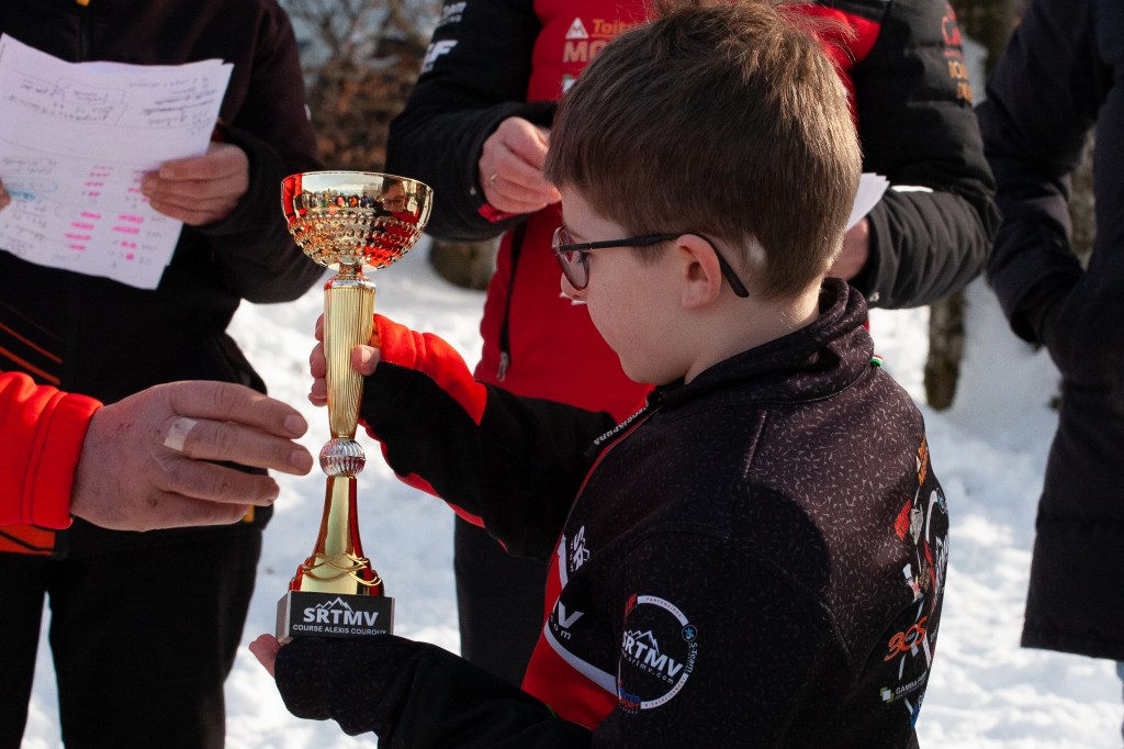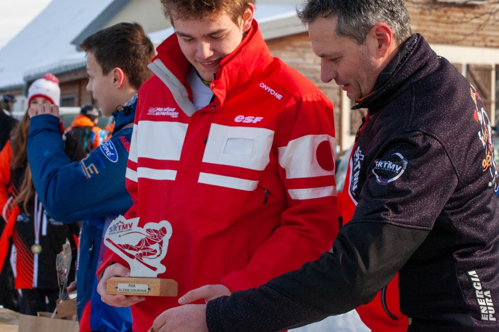 Le trophée Course Alexis Couroux est cette année Rouge Blanc et Noir aux couleurs du SRTMV, il est assemblé à la main dans les Vosges par Anthony Claude et les entreprises de la vallée.